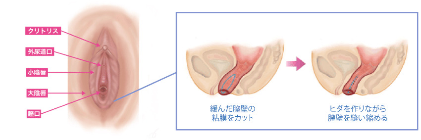 - 膣括約筋縫縮術:膣の入り口付近にある括約筋を縫い縮める施術